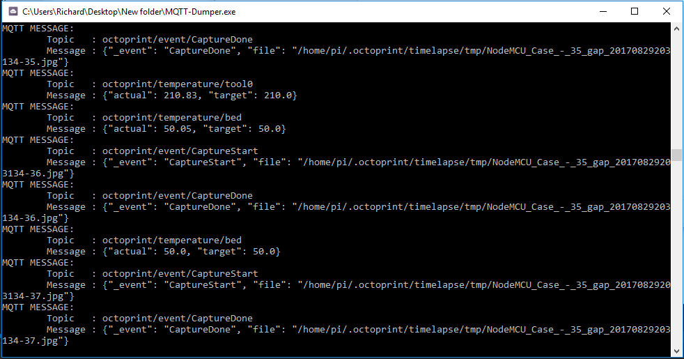 For the moment MQTT-Dumper will run as a console application (shown below):