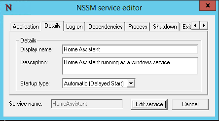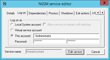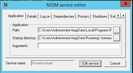 nssm edit HomeAssistant