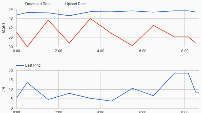 Finally checking on the history component, we can see that all our speedtest data is being recorded as expected.