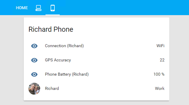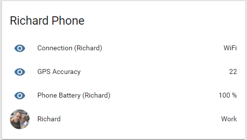 Most of it is self-explanatory with the exception of the value_template, which I am sure most of you can work out. Basically this template first checks that we have some battery information to extract (value_json.batt) and providing we do it will extract it, should there be no information to extract it will use the last known value of the battery. I found that sometimes OwnTracks would check in without sending battery information, this is just a safeguard against that.