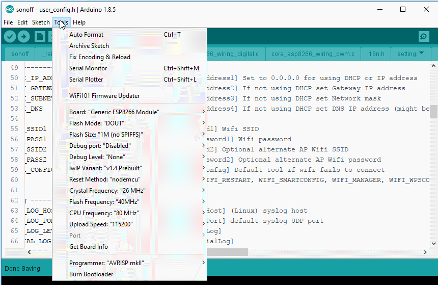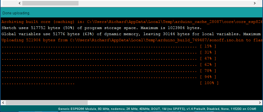 - The fact that the Arduino IDE cached the build file allowing me to flash multiple sonoff devices quicker