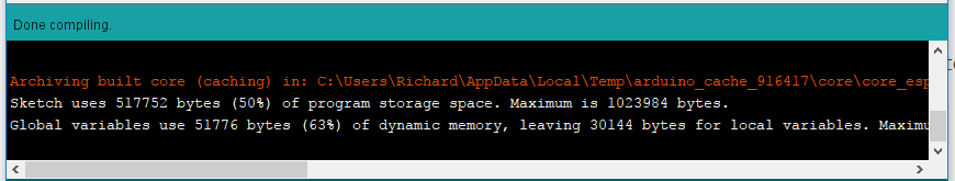 Once you have verified, and are happy with your board configuration press the tick to start compiling / verifying the firmware (this can take a while). Hopefully everything goes well and you end up with success as shown below.