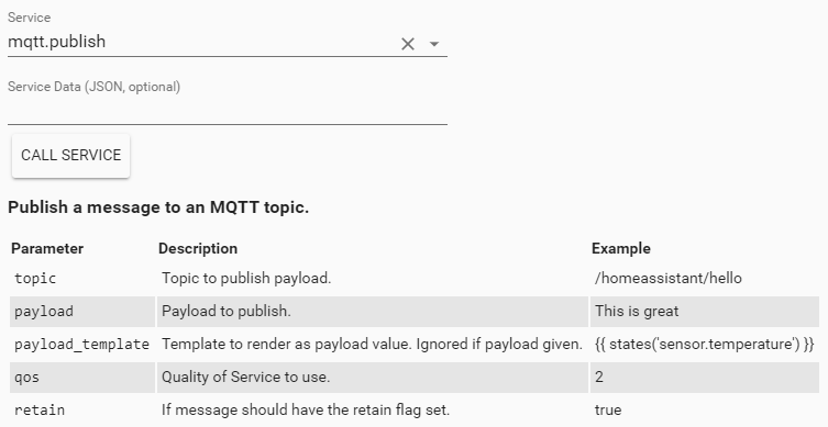If everything went well you should be able to see \ call the mqtt.publish service: