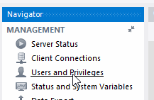 To create the hass_user account simply click on the Users and Privileges link found under the Navigator pane followed by the Add Account button at the far bottom.