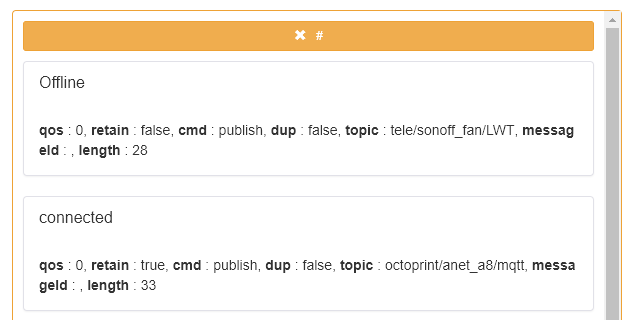 We can confirm that our configuration is correct by subscribing to either # or octoprint/anet_a8/# in your preferred MQTT client (in my case I am using MQTTBox).