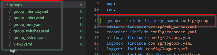 To achieve this I will be making use of the !include and !include_dir_list commands and convert configuration like this: