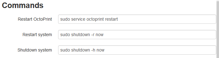 The next thing I would like to do is enable the server controls in OctoPrint (e.g. shutdown, restart, etc.).