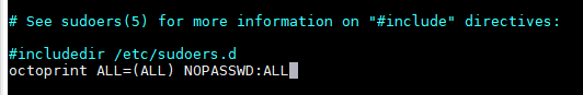 octoprint ALL=(ALL) NOPASSWD:ALL