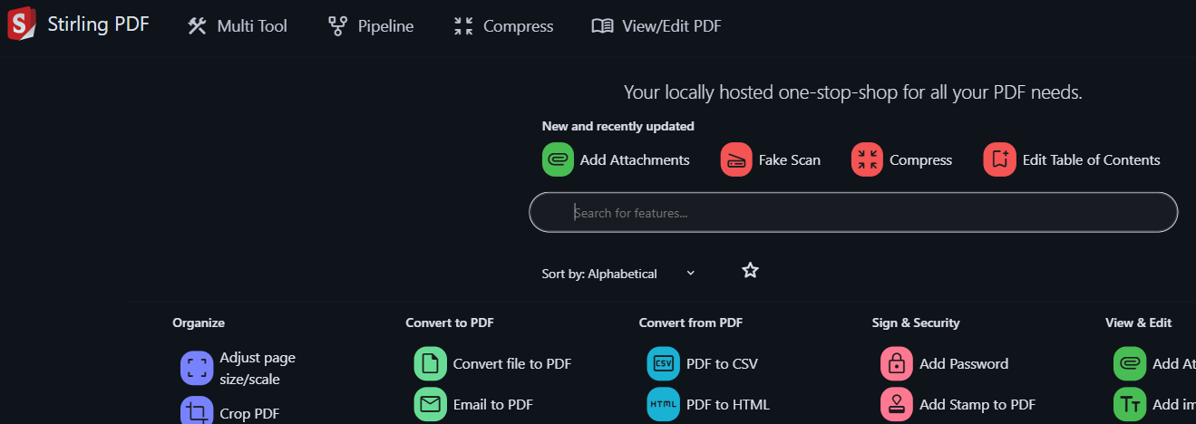 StirlingPDF allows you to run over 50 powerful PDF tools — locally, securely, and on your own infrastructure.