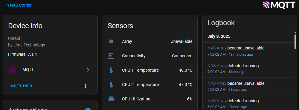 The hass-unraid is a Docker container parses and forwards all WebSocket messages from your Unraid server to Home Assistant using the MQTT protocol.
