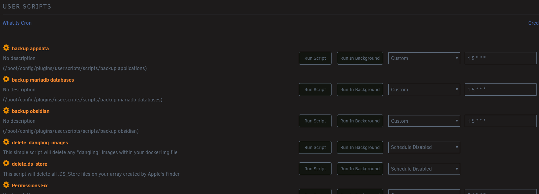 I make use of this plugin to run scheduled scripts against my Unraid server (like my appdata backup script).