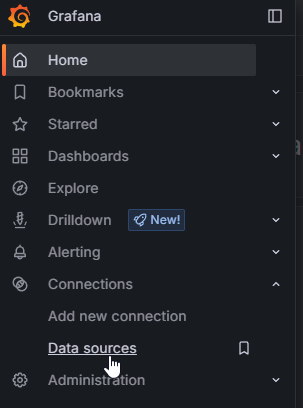 To add a data source to Grafana, click on the logo, then click on Data sources.