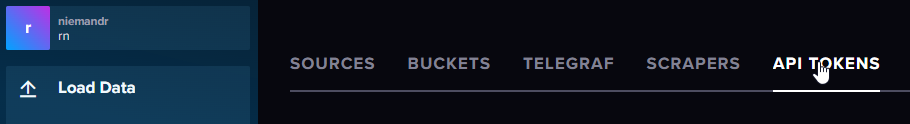 To generate a token in the web interface, click on the Load Data menu item, followed by selecting the API Tokens tab.