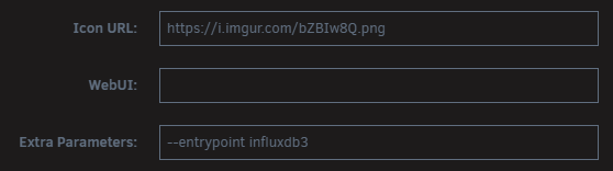 | Advanced | Extra Parameters | --entrypoint influxdb3 |